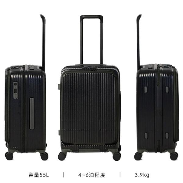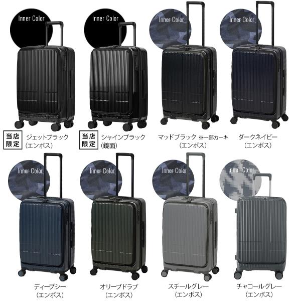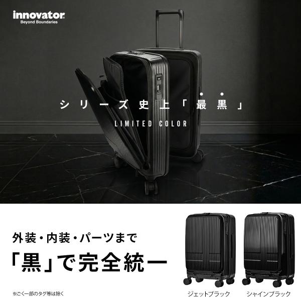 最大50% 3/5限定 2年保証+特典 限定色 イノベーター スーツケース Mサイズ 55L INV155 フロントオープン ストッパー付き 軽量 中型 黒 ブラック innovator