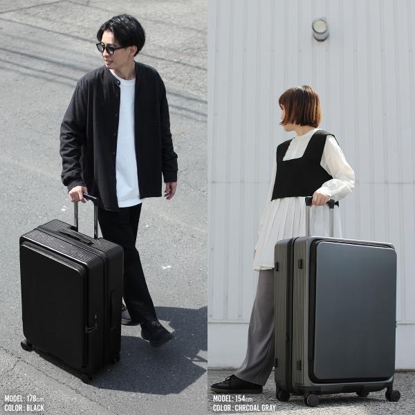 最大50% 3/5限定 2年保証+特典 限定色 イノベーター スーツケース Mサイズ 55L INV155 フロントオープン ストッパー付き 軽量 中型 黒 ブラック innovator