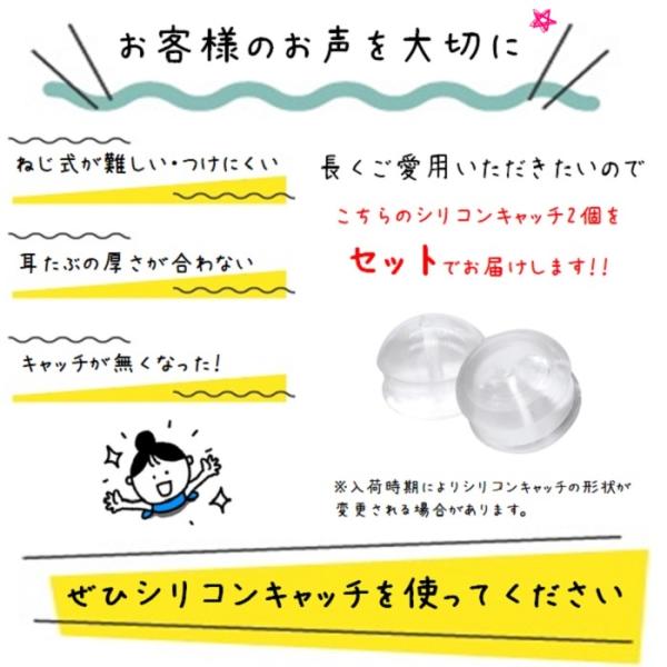 ねじ式&シリコンキャッチ付で外れにくく安心の両耳2個セット。爆買