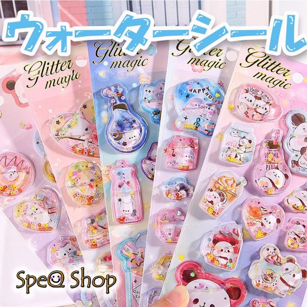 ウォーターシール シール ぷくぷく かわいい 人気 ねこ パンダ ぺんぎん 水入り ビーズ キラキラ 3D ぷくぷくシール 送料無料