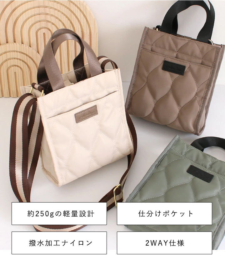 トートバッグ ショルダーバッグ レディース 斜めがけ 軽量 ミニバッグ キルティング 2way ショルダー トート ナイロン 撥水 通勤 通学 お出かけ リズデイズ ss10