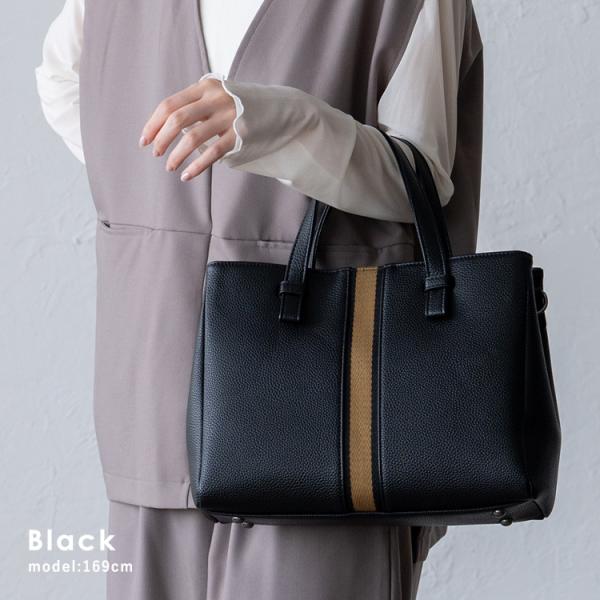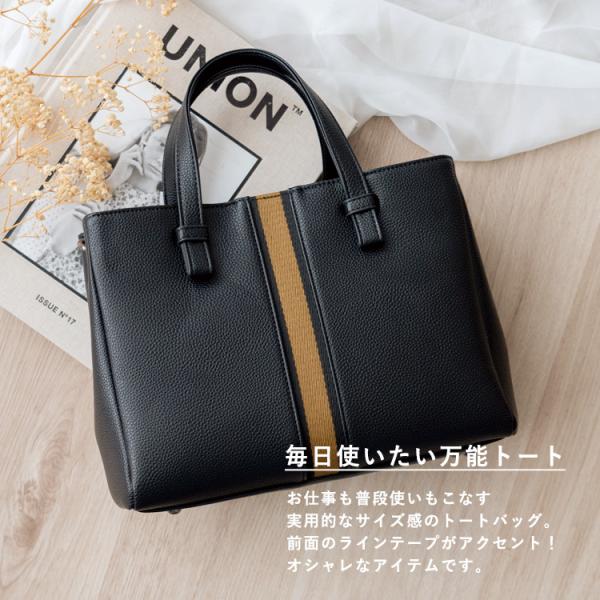 ラインテープがポイントのトートバッグ。