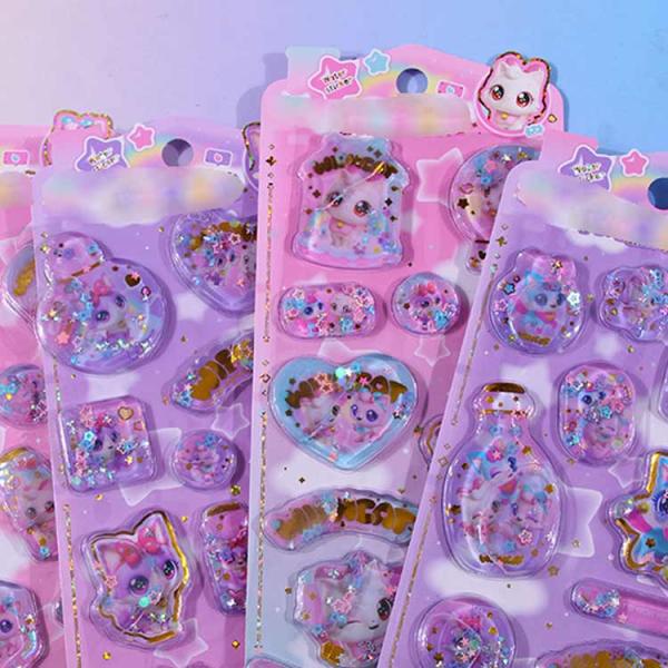 大人 ねこ ネコ柄 ウォーターシール ウォーターインシール 女の子 シール帳 2枚入り 水入りシール シャカシャカシール 3D デコシール 猫 ぷくぷ