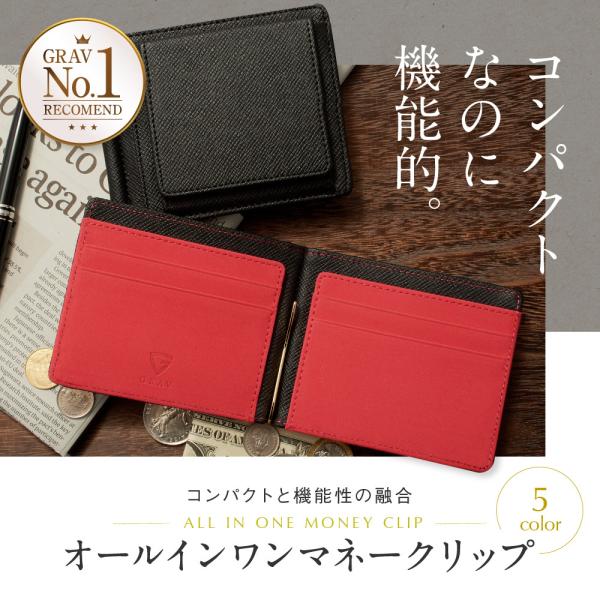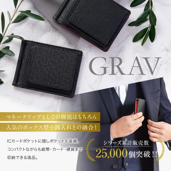 GRAV 公式 財布 メンズ マネークリップ 二つ折り財布 小銭入れ付き 男性用 薄型 軽量 薄い レザー財布 小銭 メンズ カードケース ギフト