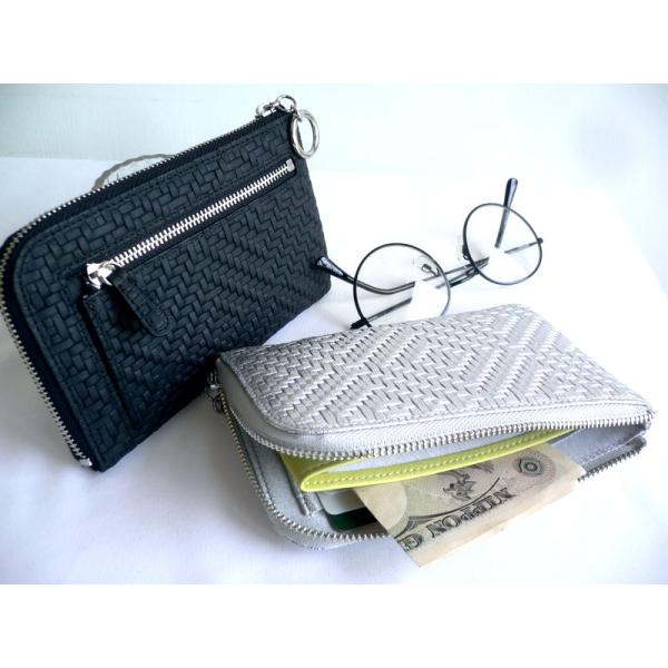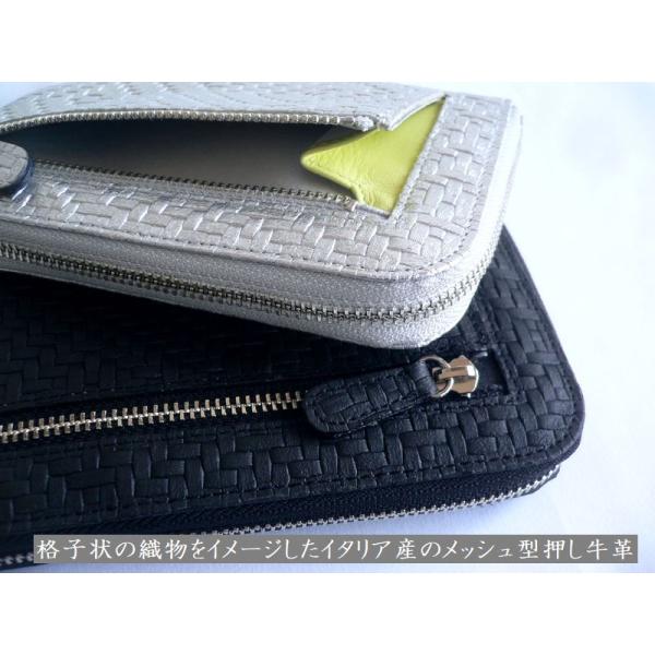 ノベルティ ARUKAN アルカン ミドル L字ファスナー 折り財布 メッシュ型押し レザー パネロ 1412-709(旧1411-704) シルバー/ゴールド/ブラック