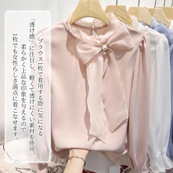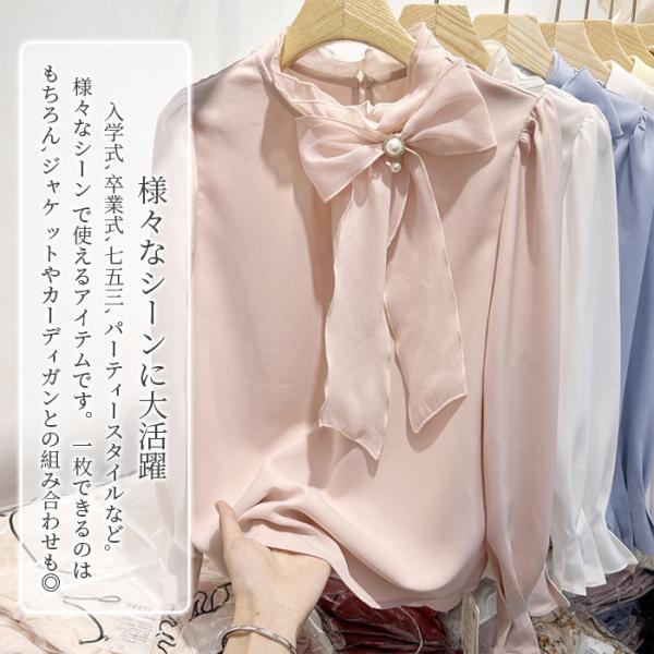 ブラウス リボン 長袖 白 レディース オフィス フォーマル フリル 30代 40代 50代 リボン付き 参観日 二次会 通勤 通学 おしゃれ