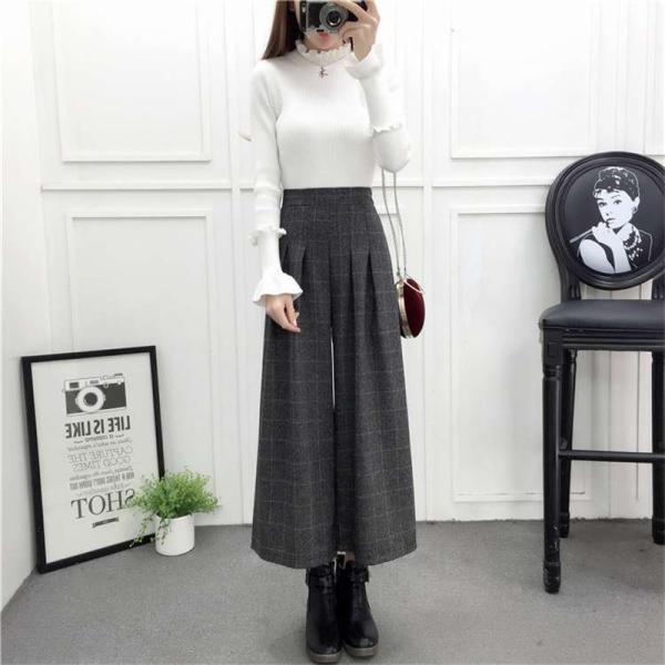 ガウチョパンツ レディース 秋冬 ワイドパンツ タックパンツ ガウチョ ボトムズ チェック柄 無地 ウエストバックゴム ゆったり 楽チン 通学通勤 エレガント 大人