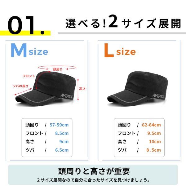 ワークキャップ メンズ キャップ 大きいサイズ アビレックス AVIREX ミリタリーキャップ 帽子 ツバ長 レディース 男性 女性 2サイズ 58cm 63cm 大きめ 深め