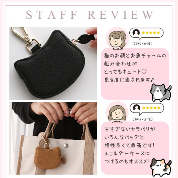 ・立体的な猫耳のシルエットと、魚モチーフのファスナーチャームがポイント。小銭はもちろん、鍵・イヤホン・アクセサリー・リップなど小物の持ち歩きに便利です。