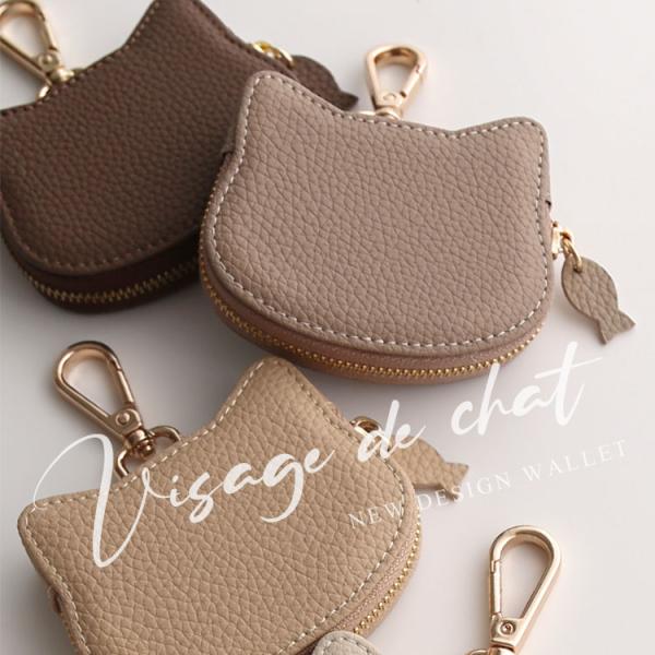 猫 コインケース レディース メンズ かわいい ミニ財布 小銭入れ キーホルダー くすみカラー ギフト 財布 ミニウォレット キーケース マルチケース 猫フェイス