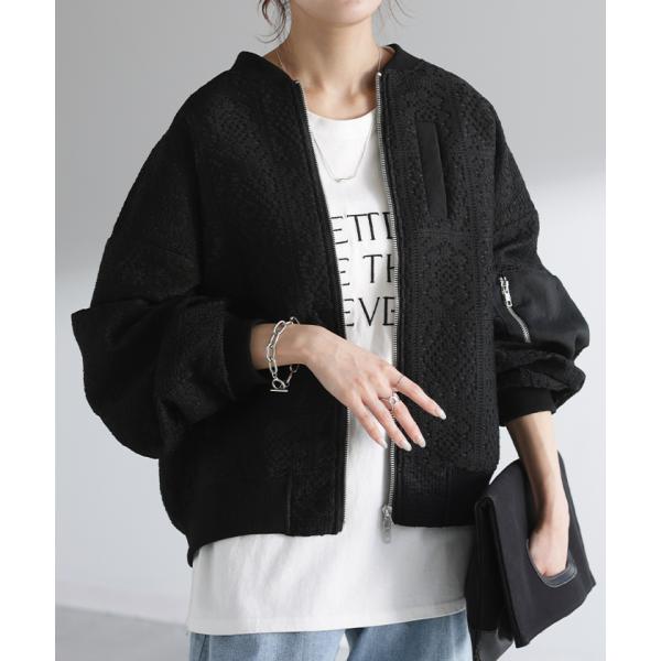 ブルゾン レース 甘辛MIX レディース アウター ジャンパー MA-1 ライトアウター 羽織 ドルマン 体型カバー