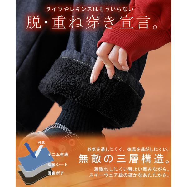 パンツ デニム 裏ボア " 選べる 2丈 " レディース ロング デニムパンツ ジーンズ ジーパン 裏起毛 体型カバー ボトムス ボトム ストレート ズボン ゆったり
