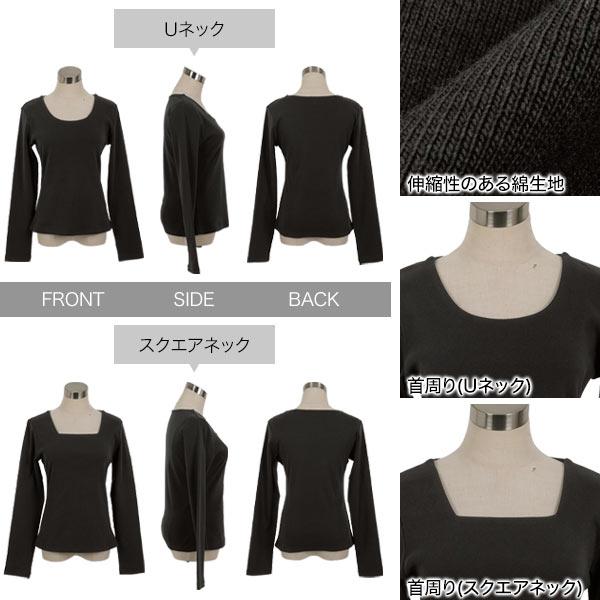 [ M L XL 選べるタイプ ] 深開きスクエア Uネック 長袖Tシャツ