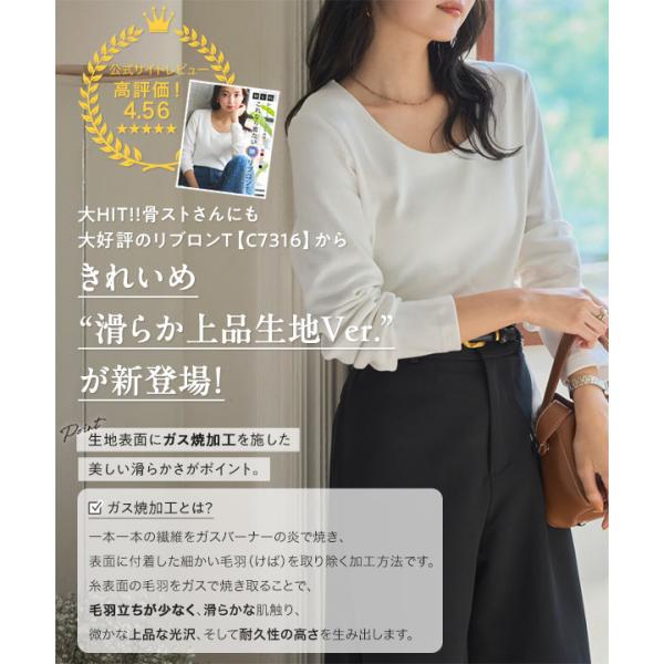 商品カテゴリ:20代 30代 40代 C7316 C7463 L M Tシャツ Uネック XL カットソー コットン シンプル スクエアネック トップス ベーシック レディース ロンT 骨スト 深Uネック 長袖 綿100