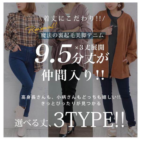 大きいサイズ レディース パンツ 新色追加 裏起毛 魔法の美ライン ストレッチ スキニーデニム 身長別 9分丈 9.5分丈 10分丈 レギパン スキニー ジーンズ SE
