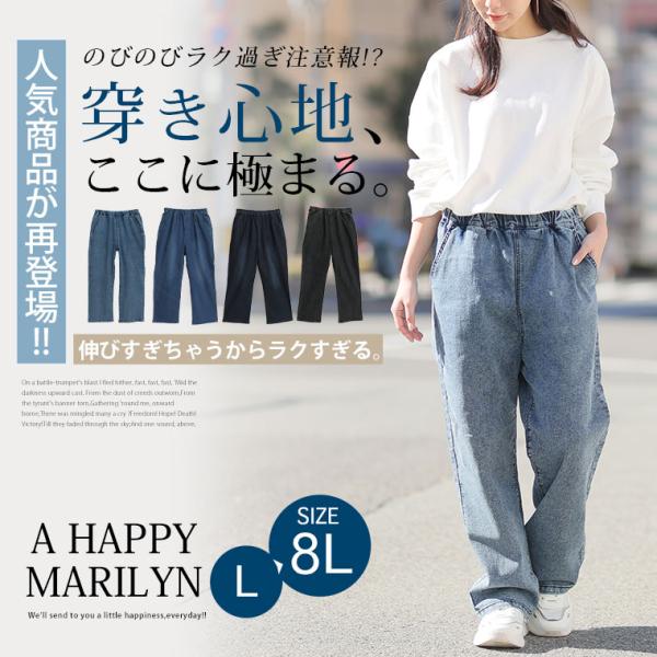 大きいサイズ レディース パンツ ストレッチデニム デニム ワイドパンツ ボトムス ジーンズ ジーパン LL 3L 4L 5L 6L 7L 8L