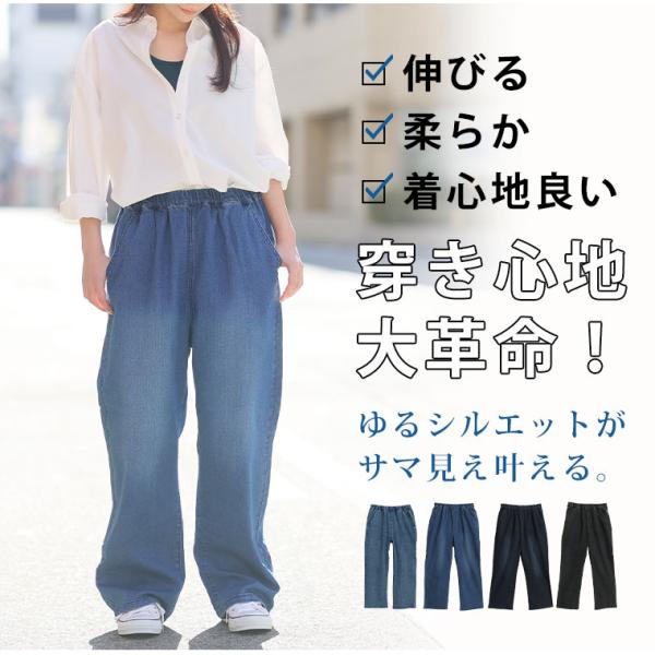 大きいサイズ レディース パンツ 「極み」 ストレッチ ワイド デニム 3丈から選べる オリジナル パンツ ストレッチデニム ワイドパンツ ボトムス ジーンズ A