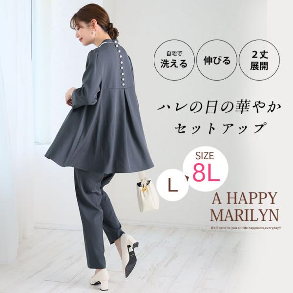 新サイズ追加 大きいサイズ レディース セットアップ ココハレシリーズ バックパール セットアップ チュニック パンツ フォーマル LL 3L 4L 5L 6L 春 A
