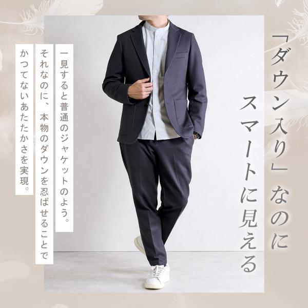 ダウンファブリック ポンチ素材 大人 リアルダウン 羽毛 あたたかい ウォームビズ 保温 アウトレット メンズジャケット ビジネスジャケット ビジカジ オフィス カジュアルジャケット 紺 標準体型 ゆったり BB体 リラックス 2ボタン シングルジャケット 伸びる 軽量 洗える ハンドウォッシャブル メンズファッション 20代 30代 40代 50代 伸縮 しわになりにくい 冬服 オシャレ 紳士服 男性用 テレワーク WEB会議 ゴルフ ジャージ ジャケパン 旅行