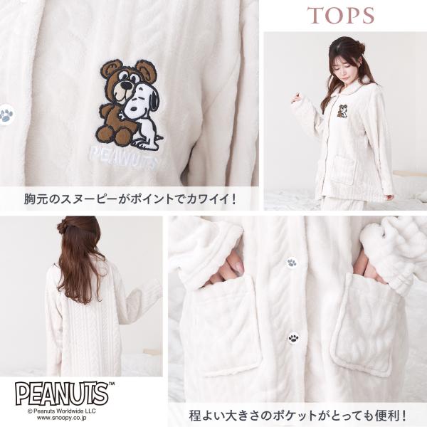 暖かフランネル素材 スヌーピー ルームウェア レディース パジャマ 腹巻き付き もこもこ 部屋着 長袖 誕生日 プレゼント ギフト あったか かわいい Luanna Jena