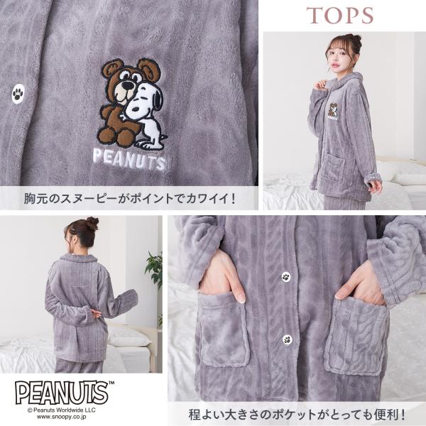 \暖かフランネル素材/ スヌーピー ルームウェア レディース パジャマ 前開き 腹巻き付き 秋 冬 もこもこ 部屋着 長袖 上下セット 誕生日 プレゼント ギフト あったか 起毛 柔らか 保温 快眠 快適 かわいい ナイトウェア グレー ベージュフリーサイズ Luanna Jena PEANUTS 冷え対策 リラックス時間 上下 ふわもこ 暖かい 可愛い フランネル 保湿素材 軽量 伸縮性 秋冬 快眠サポート 癒し時間 睡眠 快適温感 ルームスタイル ルアンナ ジェナ 最強配送 送料無料 スヌーピー snoopy ルアンナジェナ クリスマス 誕生日 モコモコ もこもこ ふわふわ 冬用 可愛い キャラクター 腹巻き 冷え防止 温活 防寒 秋冬 母の日 ホワイトデー プレゼント用 レディース 部屋着セット 冬 弊社の商品は ジェラートピケ ジェラピケ の商品ではございません。