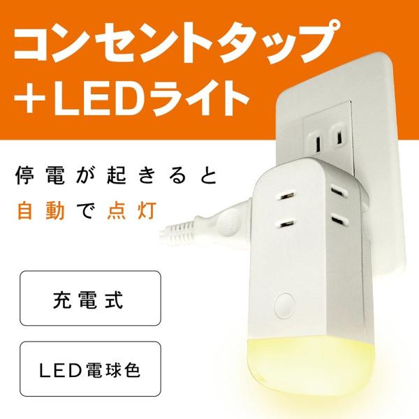 トップランド TOPLAND ライト付きコンセントタップ M7410 3口 ホワイト【メーカー直送品 代引き不可 ラッピング不可 配送日時指定不可】