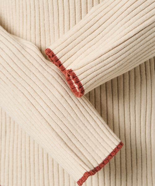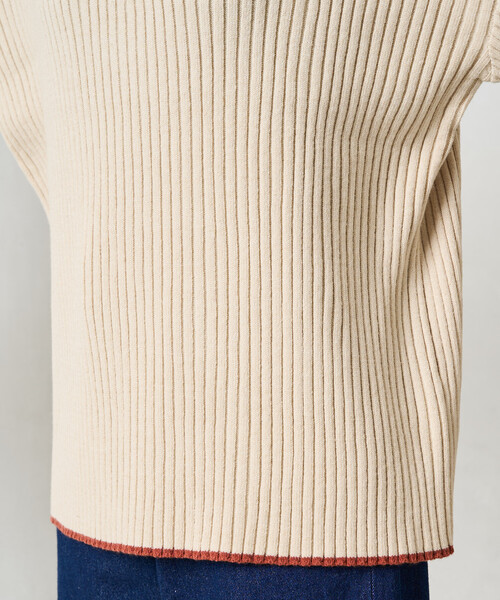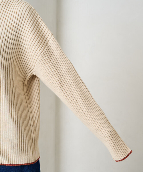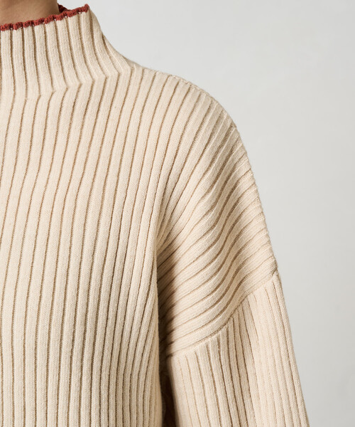 ニット セーター 限定展開 配色 ライン リブニット ハイネック プルオーバー レディース