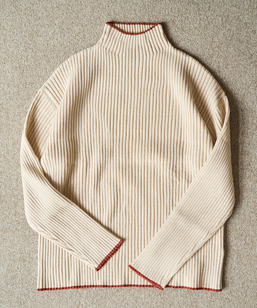 商品名:限定展開 配色 ライン リブニット ハイネック プルオーバー