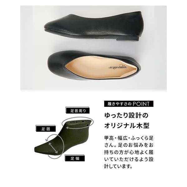 送料無料 パンプス 靴 4E 幅広 ゆったり ワイド 大きいサイズ やわらか Vカット フラット らくちん ぺたんこ スクエアトゥ フィット 23.0 26.5 (アクアカルダ)