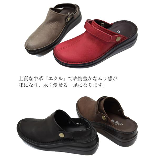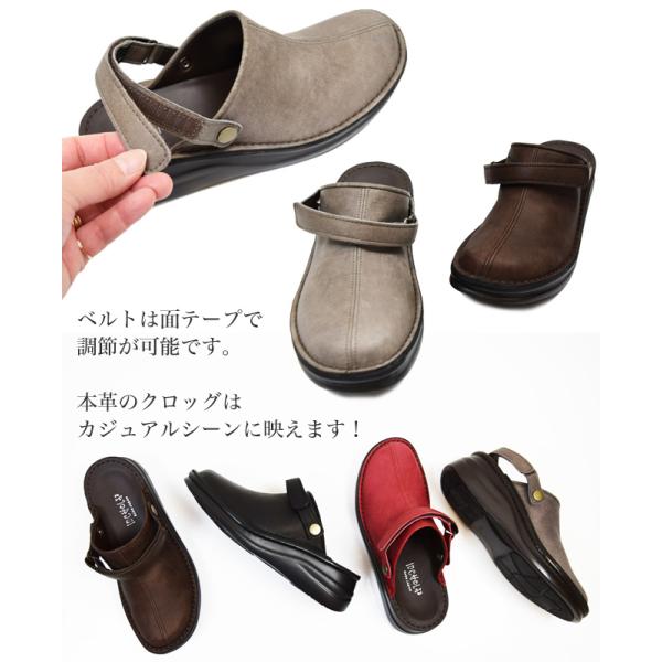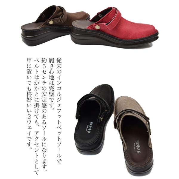 インコルジェ 本革 日本製 コンフォートシューズ ベルトサンダル 2WAY クロッグ サンダル サボ 本革 3E 幅広 ゆったり 疲れない(FOO-SP-8171)