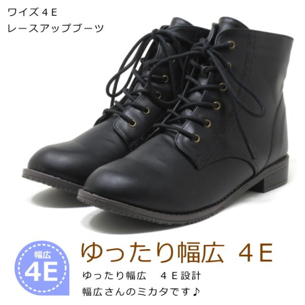 レースアップブーツ 大きいサイズ レディース ブーツ 4e
