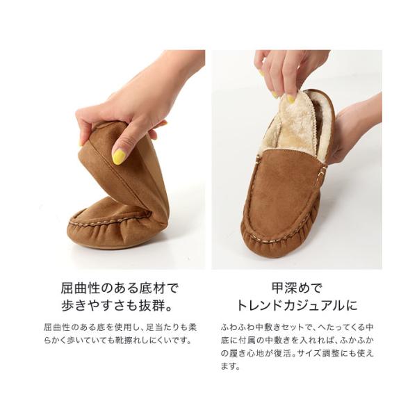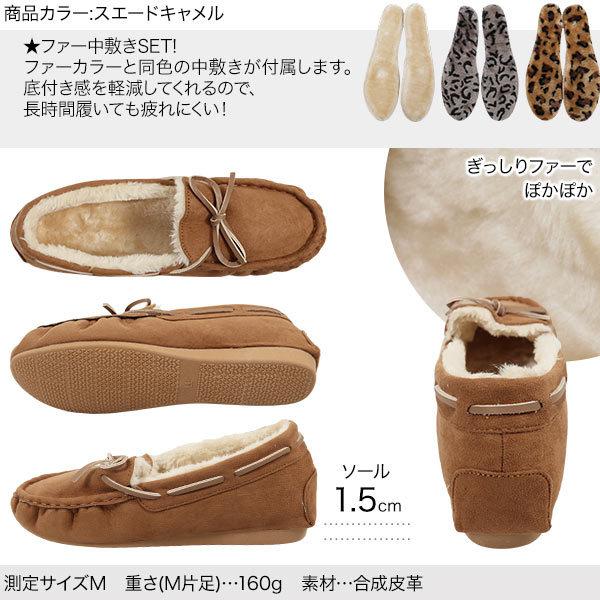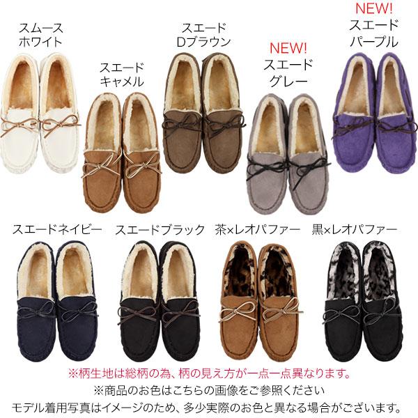 ファー中敷きセット モカシン ファーモカシン シューズ レディース リボン紐 ぺたんこ フラットシューズ H548