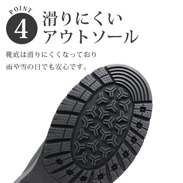 4時間×4cmの防水設計で雨の日にもお履きいただけます。アウトソールは滑りにくいので、斜面や濡れた路面でも安心です。履き口のゴムを調節すれば、雨が入りにくく快適です。人気のMOZのロゴが可愛いレディースダウンブーツです。