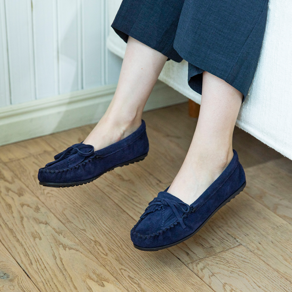 柔らかなスエード素材を使用した定番モカシンは、履きこむほどに足に馴染みます。