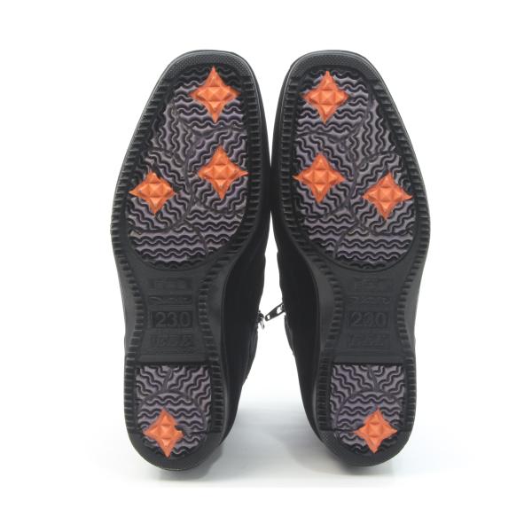 ・一番の売りは底!トリプルスパイク底(柔らかい天然ゴムに硬いセラミックと籾殻を前後のソールに配合、さらにスチールピン16本を埋め込み)、氷の路面もしっかりキャッチします!