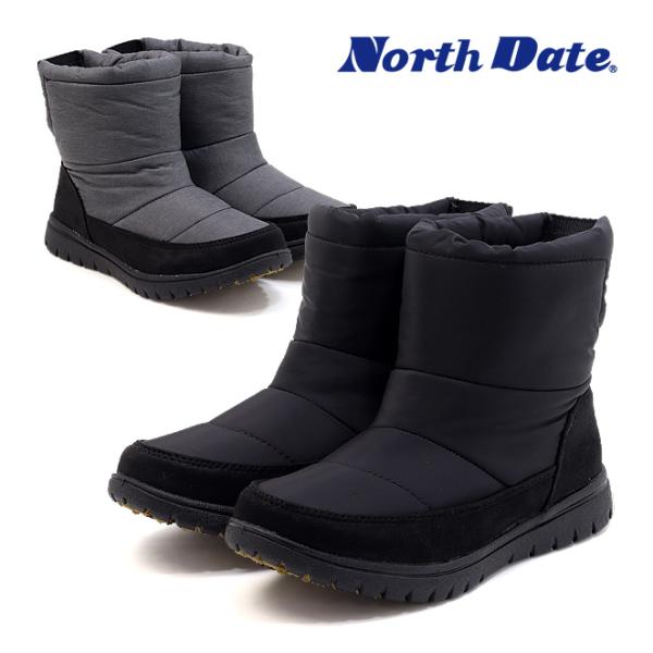 ノースデイト レディース ウィンターブーツ ブラック グレー 反転式 スパイク 防滑 防寒 ニットゴア バックゴア 3cm耐水 滑りにくい 黒 灰 North Date KH-38035