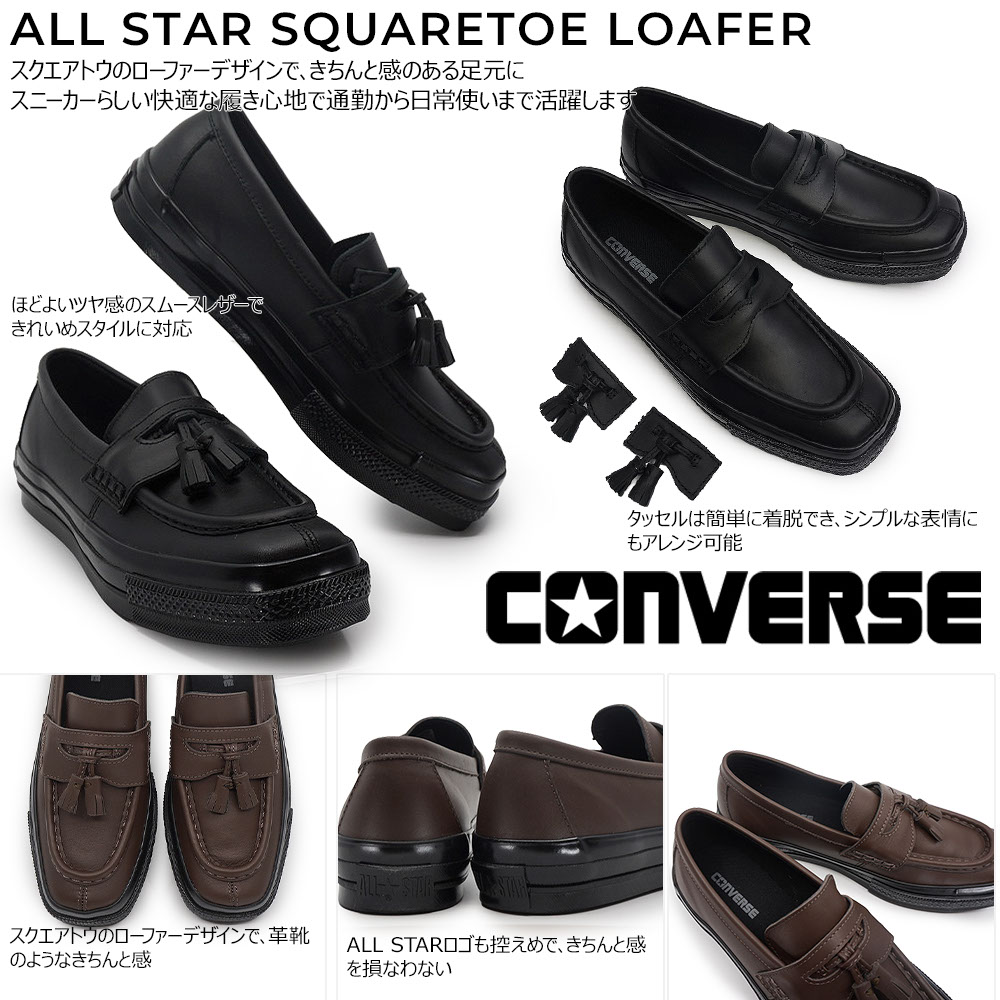 コンバース オールスター スクエアトウローファー モノクローム スニーカー レディース メンズ レザー ブラック ブラウン 26春夏新作