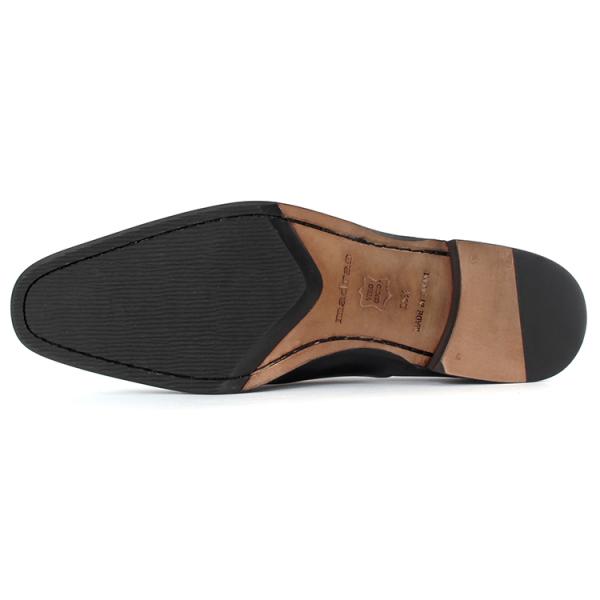 スタイリッシュなスクエアーの木型に王道のストレートチップデザインはシンプルでありながら品のある印象を与えビジネスから冠婚葬祭まで幅広いシーンに対応可能。ワードローブにぜひ一足は入れておきたいアイテムです。