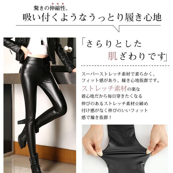 レザーパンツ レディース フェイクレザー ロングパンツ ハイウェスト 大きいサイズ カジュアル 細身 スキニー 美脚 脚長 美尻 裏起毛 2タイプ