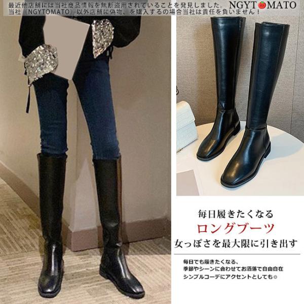 ロングブーツ レディース ロング丈 太ヒール スクエアトゥ トレンド PU 黒 シンプル コスプレ 美脚 おしゃれ 歩きやすい 履きやすい ファスナー付き