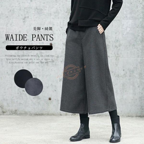 ウール調 ガウチョパンツ 秋冬 キュロット パンツ 冬 ガウチョ レディース 九分丈 ワイド 暖かい キュロットパンツ きれいめ スカーチョ 九分丈 ワイドパンツ フ