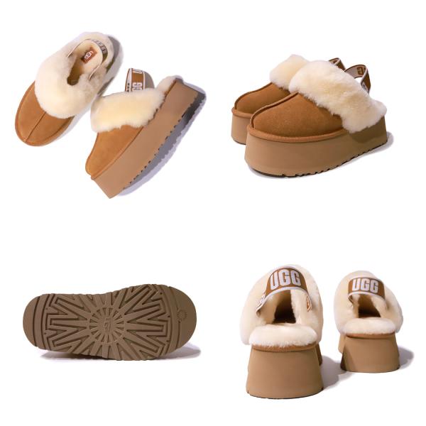 UGG WOMENS FUNKETTE CHESTNUT BLACK アグ ウィメンズ ファンケット サンダル スリッパ シューズ レディース ( ファー 1113474 )