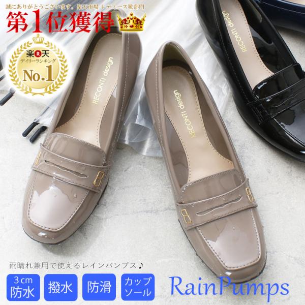 【爆買】レインパンプス レディース レインシューズ 痛くない ローファー バックル ローヒール 防水 撥水 雨 雨の日 雨靴 通勤 雨晴兼用 b-151142 17025