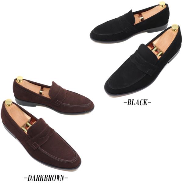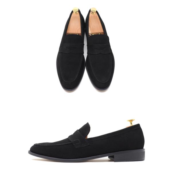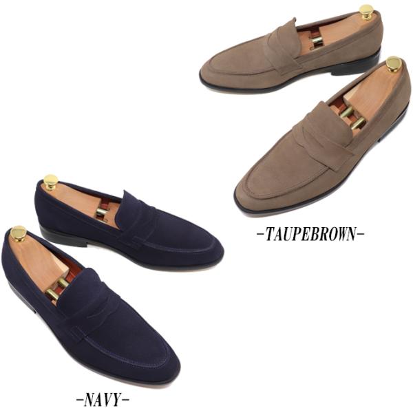 本革 メンズ スエード ローファー スリッポン ハンドメイド マッケイ製法 革靴 ブラック ダークブラウン トープブラウン ネイビー グレー