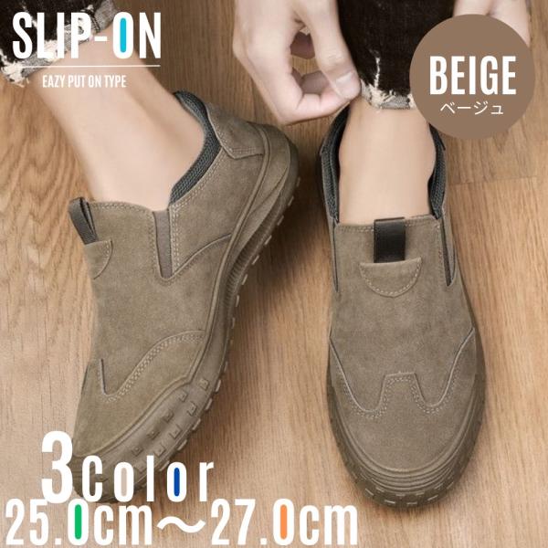 スリッポン メンズ ドライビングシューズ 軽量 通気性 ワークシューズ スウェード調 ブラック グレー ベージュ