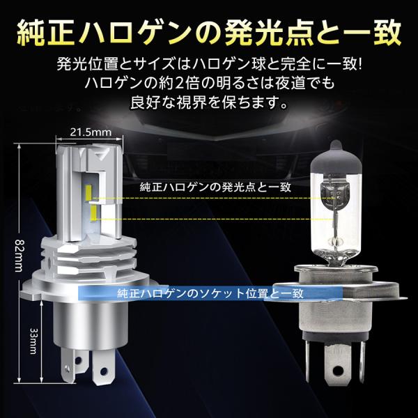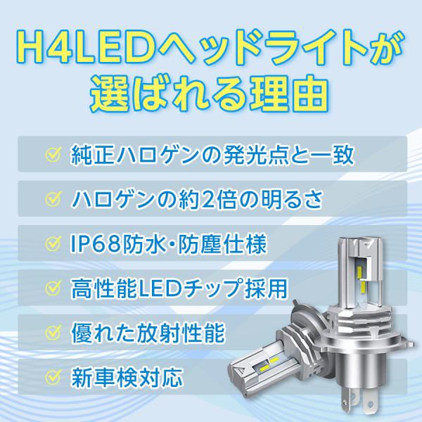 H4 ledバルブ LEDヘッドライト 車検対応 Hi/Lo切替 車 バイク用 2個セット16000lm DC12V/24V 6500k ホワイト 白光 明るい